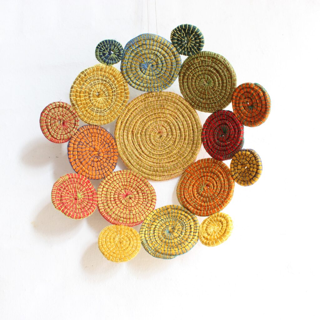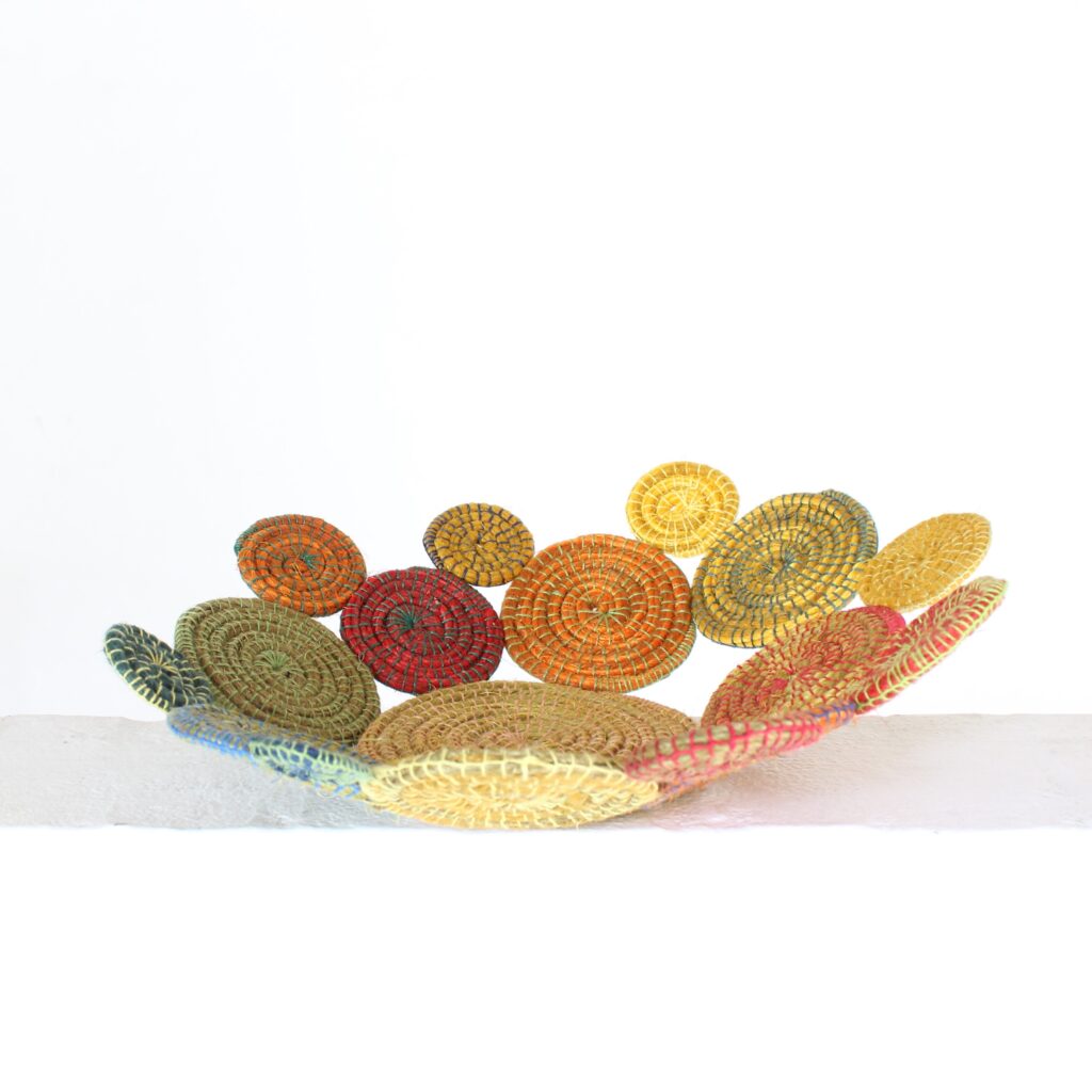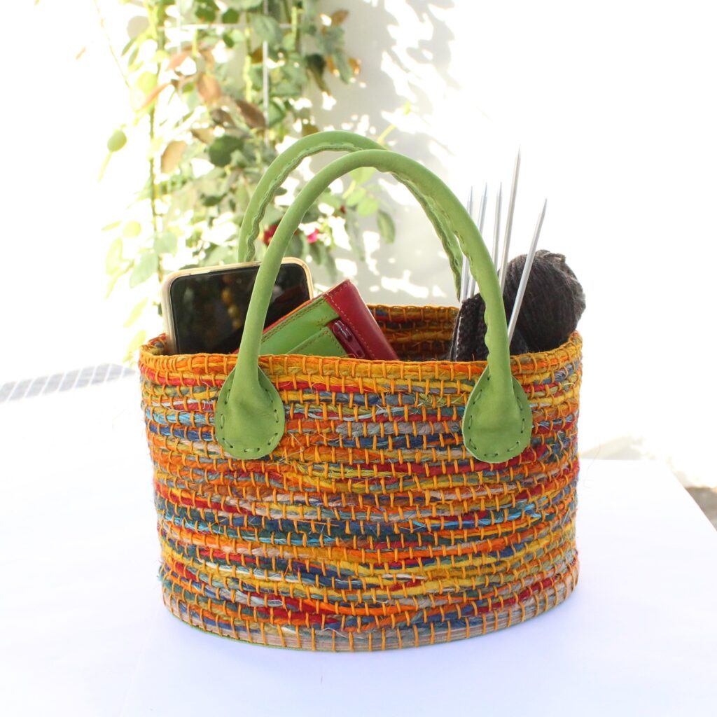 Disse kurve er bundet med en kerne af tyk sisalsnor og omviklet med hjemmefarvede kludestrimler.